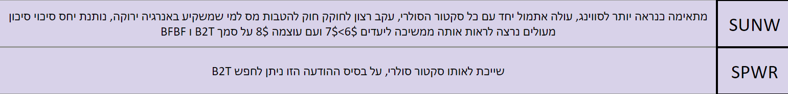 בסקטור האנרגיה המתחדשת/ירוקה קיבלנו ירידות עקב אכזבה מדברי יו"ד הפד' שבחרו שלא לתת אשראי לתחום והשאירו זאת להחלטת מדיניות הממשל בנושא.
