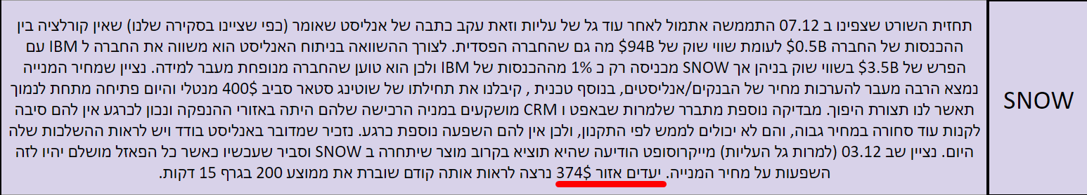 SNOW- עובדת במדויק ע"פ הניתוח שלנו