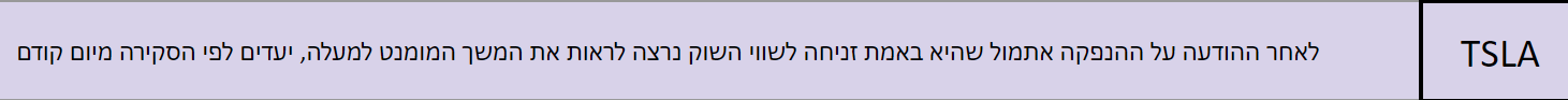 TSLA- יוצא עדכון על דוח מכירות שעולה ב - 78% בסין, אך בנק JPM בהודעה הזויה משבית את השמחה - מצד אחד מנחה את לקוחותיו לא לחזק השקעות במניה ומצד שני מעלה את יעד המניה ב- 10$- אך יעד המחיר של הבנק הזוי 90$- נראה כמו ניעור ידיים קלאסי לכסף חובבני- אבל לכסף טיפש זה מספיק והמניחה יורדת כ- 9% למטה.
