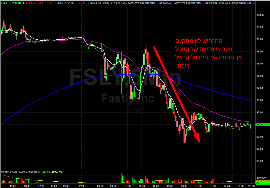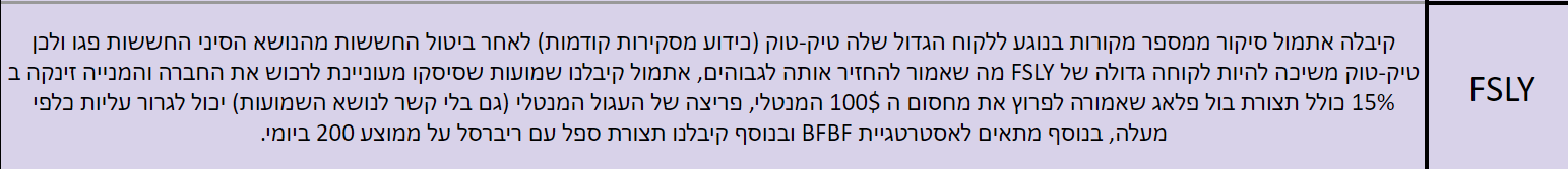 FSLY- לא פורצת את מחסום ה 100$ המנטלי ולכן התרחיש לא מתקיים לפעולה ממשית.