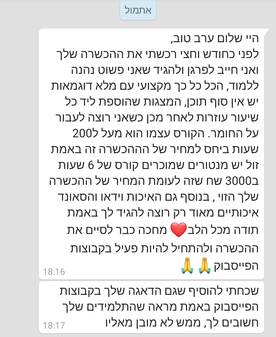 המלצות תלמידים